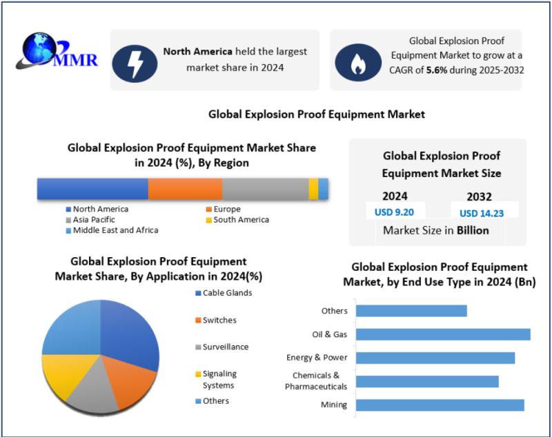 The Global Explosion Proof Equipment Market was valued at USD 9.20 Billion in 2024 and is projected to reach USD 14.23 Billion by 2032, growing at a CAGR of 5.6% during the forecast period from 2025 to 2032. This steady growth reflects increasing safety investments across hazardous industries and rising regulatory enforcement worldwide.