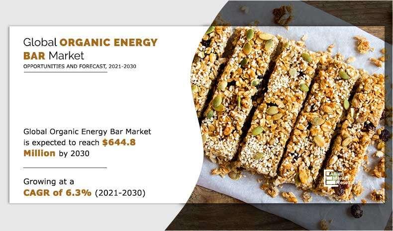 Organic energy bar market size was pegged at $329.42 million in 2020, and is expected to reach $644.80 million by 2030, growing at a CAGR of 6.3% from 2021 to 2030.