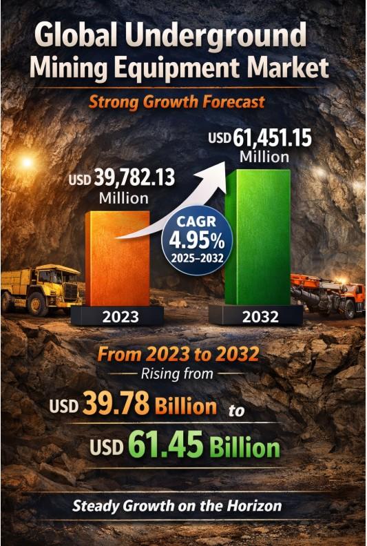 The Global Underground Mining Equipment Market is poised for steady and sustained growth over the coming decade, driven by rising global demand for minerals, metals, and energy resources. The market is projected to expand from USD 39,782.13 million in 2023 to USD 61,451.15 million by 2032, registering a compound annual growth rate (CAGR) of 4.95% between 2025 and 2032. This growth trajectory reflects the…