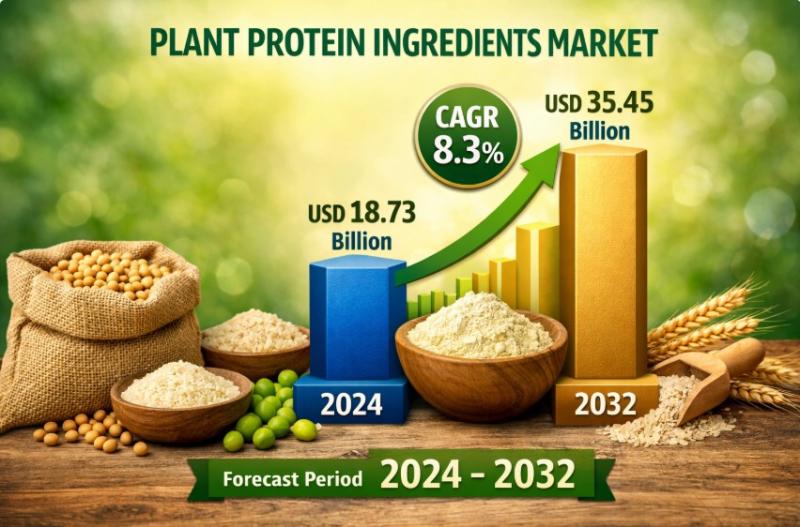 The global Plant Protein Ingredients Market is witnessing a decisive shift in the global nutrition and ingredients landscape. Valued at USD 18,732.78 million in 2024, the market is projected to nearly double, reaching USD 35,451.11 million by 2032, registering a robust compound annual growth rate (CAGR) of 8.3% during the forecast period. This growth reflects accelerating consumer demand for plant-based nutrition, clean-label formulations, and sustainable protein alternatives across food, beverage,…
