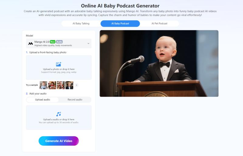 Mango AI's Baby Podcast AI Generator Turns Baby Photos into Podcast Clips