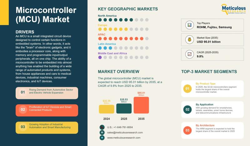 The global microcontroller (MCU) market is experiencing strong growth as embedded intelligence becomes essential to modern electronics, automotive systems, and industrial automation. The market is projected to grow from USD 35.53 billion in 2025 to USD 95.01 billion by 2035, achieving a solid compound annual growth rate (CAGR) of 9.8% during the forecast period. This growth reflects the increasing complexity of electronic systems and the growing need for real-time processing,…