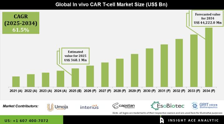 InsightAce Analytic Pvt. Ltd. announces the release of a market assessment report on the "Global In vivo CAR T-cell Market Size, Share & Trends Analysis Report By Delivery Systems (Lipid Nanoparticles (LNPs), Viral Vectors, Oncolytic Viruses), Targets (Hematological Cancers, Solid Tumors, Non-Oncology) - Market Outlook And Industry Analysis 2034"