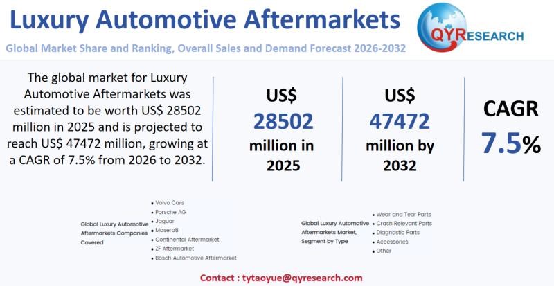 Global leading market research publisher QYResearch published the release of its latest report, "Luxury Automotive Aftermarkets - Global Market Share, Ranking, Sales, and Demand Forecast 2025-2031". This in-depth report provides a complete analysis of the global Luxury Automotive Aftermarkets market, offering critical insights into market size, share, demand, industry development status, and future forecasts. Whether you're a…