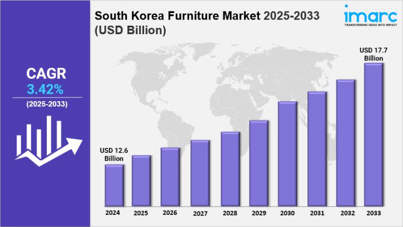 IMARC Group has recently released a new research study titled "South Korea Furniture Market Report by Material (Metal, Wood, Plastic, Glass, and Others), Distribution Channel (Supermarkets and Hypermarkets, Specialty Stores, Online Stores, and Others), End Use (Residential, Commercial), and Region 2025-2033", offers a detailed analysis of the market drivers, segmentation, growth opportunities, trends and competitive landscape to understand the current and future market scenarios. South Korea Furniture Market Overview The South Korea