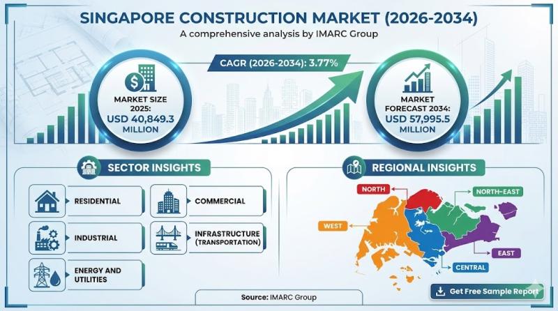Source: IMARC Group | Category: Construction and Manufacturing | Author Name: Tarang Report Introduction According to IMARC Group's latest report titled "Singapore Construction Market Size, Share, Trends and Forecast by Sector, and Region, 2026-2034", this study offers a granular analysis of the nation's resilient infrastructure sector driven by government spending and urban renewal. The study offers a profound analysis of the industry, encompassing market share, size, growth factors, key trends, and regional