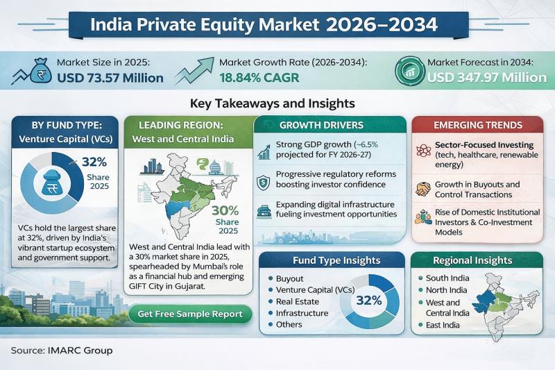 According to IMARC Group's report titled "India Private Equity Report 2025 | Market Size & Growth" the report offers a comprehensive analysis of the industry, including market size, growth, trends, and regional insights.