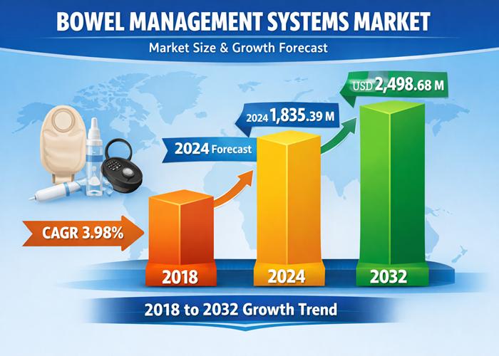The Bowel Management Systems Market has emerged as a critical segment within the global medical devices landscape, addressing the growing clinical and home-care needs associated with bowel dysfunction. The market was valued at USD 1,680.00 million in 2018, increased steadily to USD 1,835.39 million in 2024, and is projected to reach USD 2,498.68 million by 2032, registering a compound annual growth rate (CAGR) of 3.98% during the forecast period.
