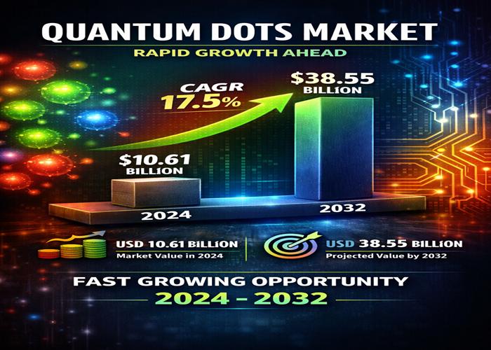 The Quantum Dots (QD) market has emerged as one of the most dynamic segments within the advanced nanomaterials and optoelectronics landscape. Valued at USD 10.61 billion in 2024, the market is projected to reach USD 38.55 billion by 2032, expanding at a robust compound annual growth rate (CAGR) of 17.5% during the forecast period. This remarkable growth trajectory reflects the rapid commercialization of quantum dot technologies…