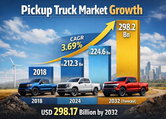 The pickup truck market size was valued at USD 212,300.00 million in 2018, reached USD 224,565.70 million in 2024, and is anticipated to expand to USD 298,175.22 million by 2032, registering a compound annual growth rate (CAGR) of 3.69% during the forecast period. This steady expansion reflects continued dominance in North America, rising adoption in emerging economies, and growing interest in electric and compact pickup truck variants.