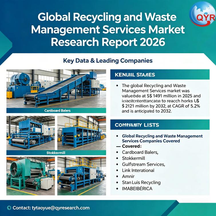 Global leading market research publisher QYResearch published the release of its latest report, "Recycling and Waste Management Services - Global Market Share, Ranking, Sales, and Demand Forecast 2026-2032". This in-depth report provides a complete analysis of the global Recycling and Waste Management Services market, offering critical insights into market size, share, demand, industry development status,…