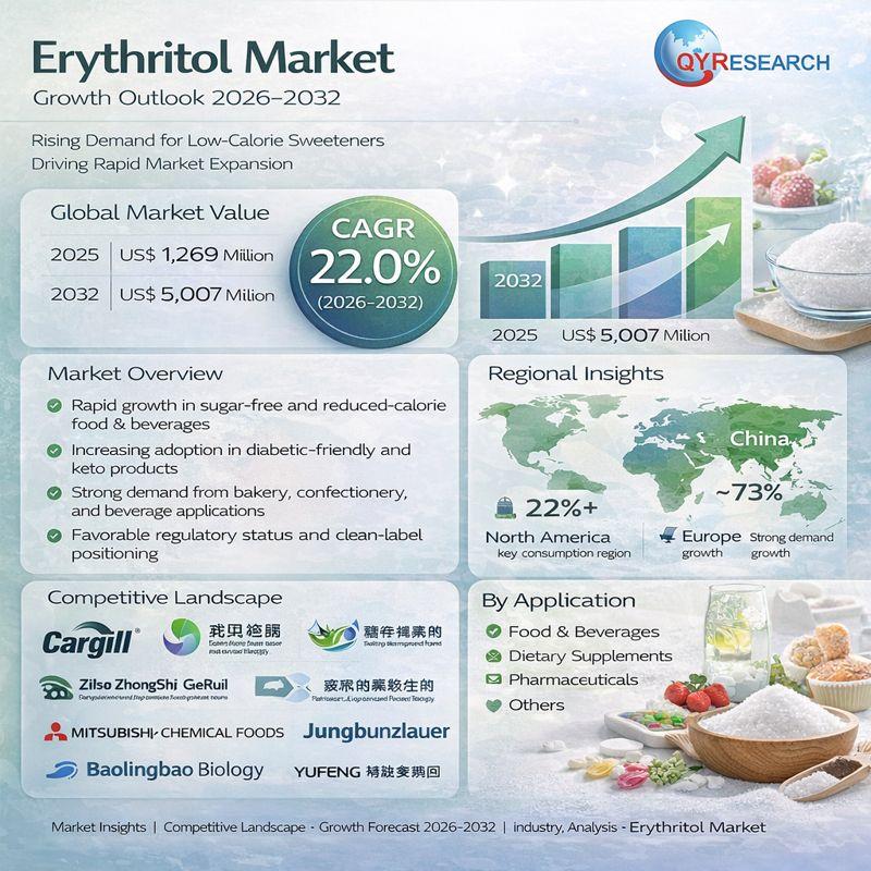 QY Research Inc., A global market research and consulting firm, has announced the release of its latest 2026 report titled "Erythritol - Global Market Share and Ranking, Overall Sales and Demand Forecast 2026-2032." The report provides a data-driven analysis of the global Erythritol market, integrating historical insights from 2020-2025 with forward-looking forecasts through 2032. It covers market size, competitive landscape, demand trends, and industry development, offering strategic insights for…