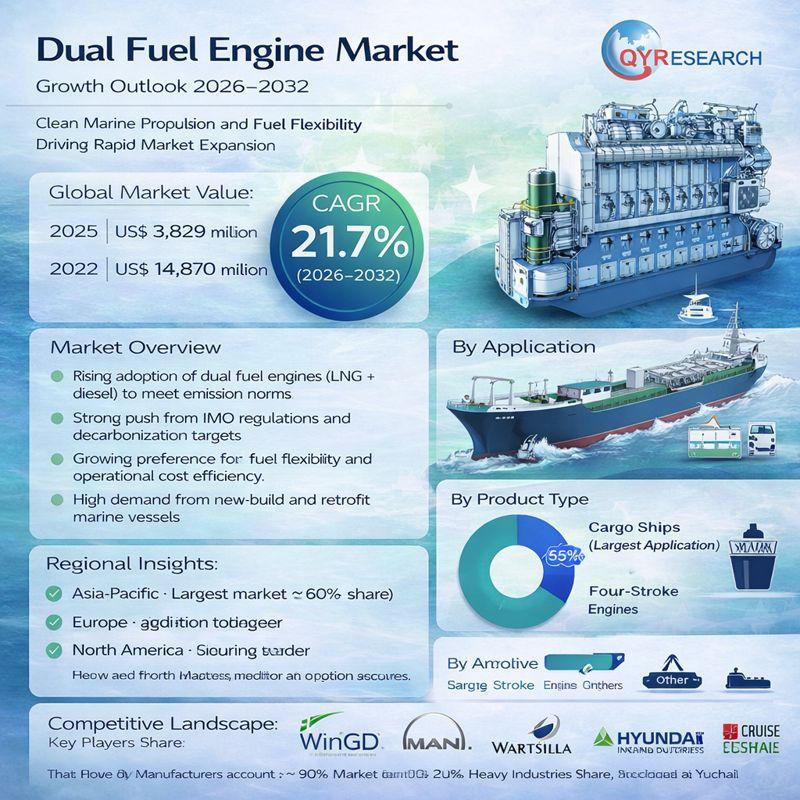 QY Research Inc., A global market research and consulting firm, has announced the release of its latest 2026 report titled "Dual Fuel Engine - Global Market Share and Ranking, Overall Sales and Demand Forecast 2026-2032." The report provides a data-driven analysis of the global Dual Fuel Engine market, integrating historical insights from 2020-2025 with forward-looking forecasts through 2032. It covers market size, competitive landscape, demand trends, and industry development,…