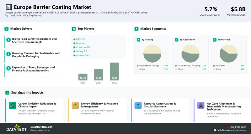 Europe Barrier Coating Market Size and Share Expand Steadily at 5.7% CAGR, Reach …