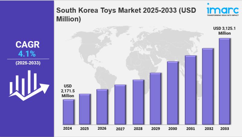IMARC Group has recently released a new research study titled "South Korea Toys Market Report by Product Type (Action Figures, Building Sets, Dolls, Games and Puzzles, Sports and Outdoor Toys, Plush, and Others), Age Group (Up to 5 Years, 5 to 10 Years, Above 10 Years), Sales Channel (Supermarkets and Hypermarkets, Specialty Stores, Department Stores, Online Stores, and Others), and Region 2025-2033" This report offers a detailed analysis of the