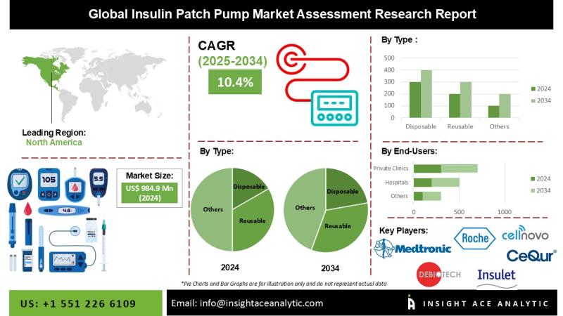 InsightAce Analytic Pvt. Ltd. announces the release of a market assessment report on the "Global Insulin Patch Pump Market- by Product Type (Reusable and Disposable Pumps), End-Users (Hospitals, Online Pharmacies, Private Clinics, and Retail Pharmacies), Trends, Industry Competition Analysis, Revenue and Forecast To 2034."