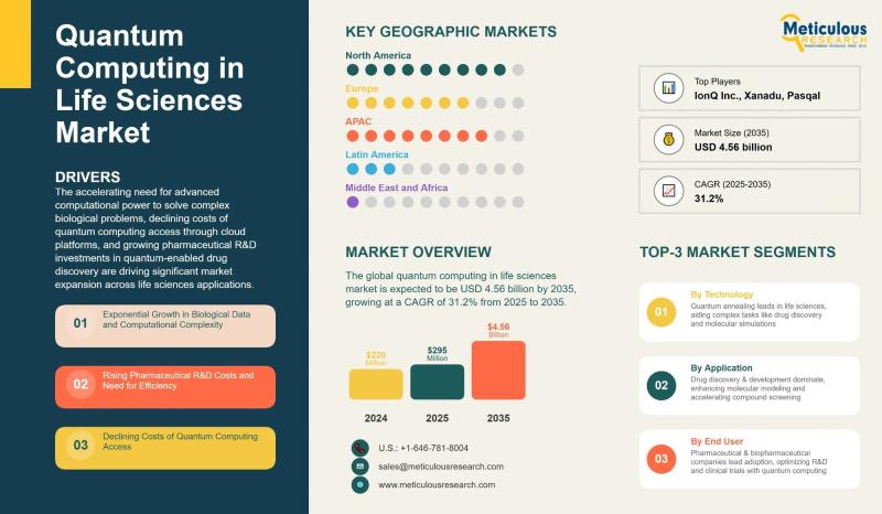 The global quantum computing in life sciences market is entering a phase of rapid expansion as pharmaceutical companies, biotechnology firms, and research institutions seek computational capabilities beyond the limits of classical computing. The market was valued at USD 220 million in 2024 and is projected to grow from USD 295 million in 2025 to USD 4.56 billion by 2035, registering a robust compound annual growth rate (CAGR) of 31.2% during…