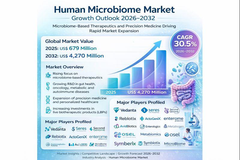 QY Research Inc., A global market research and consulting firm, has announced the release of its latest 2026 report titled "Human Microbiome - Global Market Share and Ranking, Overall Sales and Demand Forecast 2026-2032." The report provides a data-driven analysis of the global Human Microbiome market, integrating historical insights from 2020-2025 with forward-looking forecasts through 2032. It covers market size, competitive landscape, demand trends, and industry development, offering strategic…