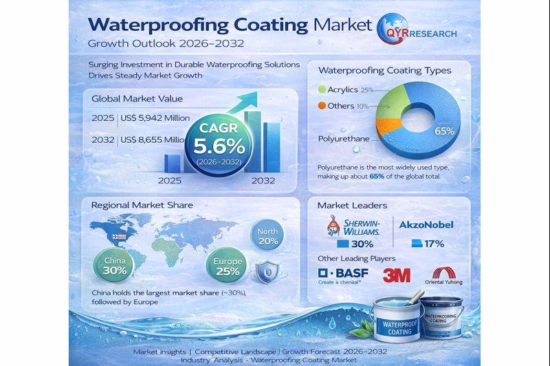 QY Research Inc., A global market research and consulting firm, has announced the release of its latest 2026 report titled "Waterproofing Coating - Global Market Share and Ranking, Overall Sales and Demand Forecast 2026-2032." The report provides a data-driven analysis of the global Waterproofing Coating market, integrating historical insights from 2020-2025 with forward-looking forecasts through 2032. It covers market size, competitive landscape, demand trends, and industry development, offering strategic…