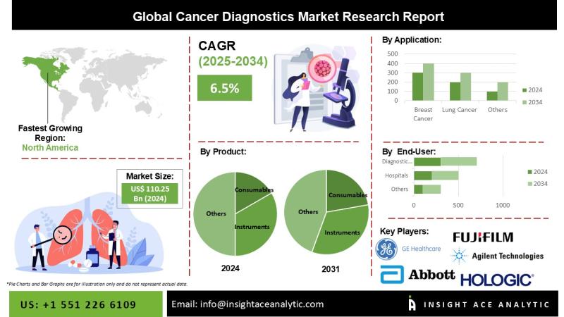 InsightAce Analytic Pvt. Ltd. announces the release of a market assessment report on the "Global Cancer Diagnostics Market Size, Share & Trends Analysis Report By Product (Consumables (Antibodies, Probes), Instruments (Pathology Instruments, Imaging Instruments, Biopsy), Technology (IVD Testing, imaging, and biopsy technology), Application (Breast Cancer, Lung Cancer), End User (Hospitals)- Market Outlook And Industry Analysis 2034"