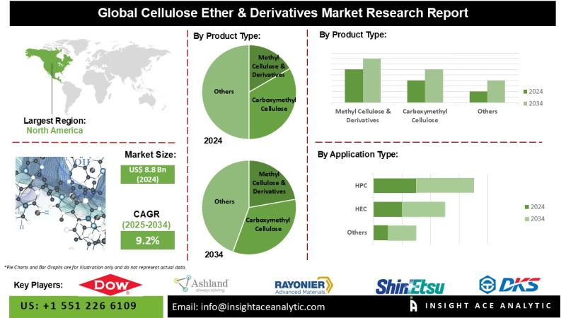 InsightAce Analytic Pvt. Ltd. announces the release of a market assessment report on the "Global Cellulose Ether & Derivatives Market- (By Product Type (Methyl Cellulose & Derivatives, (Methyl Cellulose (MC), Hydroxypropyl Methyl Cellulose (HPMC), Hydroxyethyl Methyl Cellulose (HEMC)), Carboxymethyl Cellulose (CCC), Hydroxyethyl Cellulose (HEC), Hydroxypropyl Cellulose (HPC), Ethyl Cellulose (EC)), By Application (Construction, Pharmaceutical, Personal Care, Food & Beverages)), Trends, Industry Competition Analysis, Revenue and Forecast To 2034."