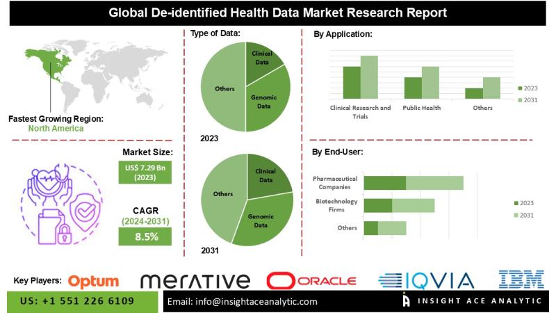 InsightAce Analytic Pvt. Ltd. announces the release of a market assessment report on the "De-identified Health Data Market"-, By Type Of Data (Clinical, Genomic, Others), By End-use (Pharmaceutical Companies, Biotechnology Firms, Others), By Application (Clinical Research and Trials, Public Health, Precision Medicine, Health Economics and Outcomes Research (HEOR), Population Health Management, Drug Discovery and Development, Healthcare Quality Improvement, Insurance Underwriting and Risk Assessment, Market Access and Commercial Strategy, Business Intelligence…