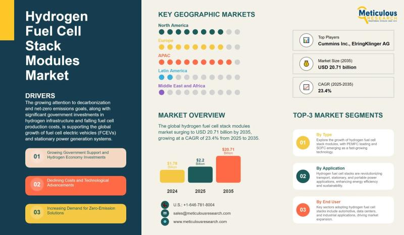 Hydrogen Fuel Cell Stack Modules Market to Reach USD 20.71 Billion by 2035