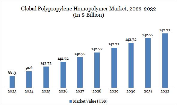 polypropylene homopolymer market reached US$ 91.6 billion in 2024 and is expected to reach US$ 142.72 billion by 2032, growing with a CAGR of 5.7% during the forecast period 2025-2032.