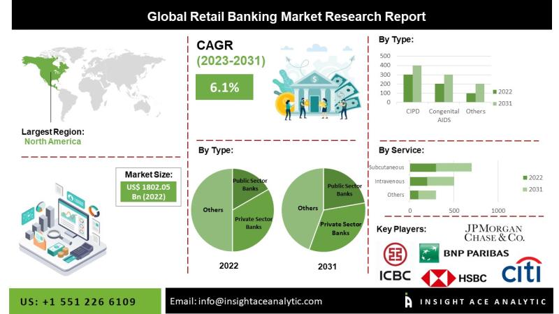 InsightAce Analytic Pvt. Ltd. announces the release of a market assessment report on the "Global Retail Banking Market Size, Share & Trends Analysis Report By Type (Public Sector Banks, Private Sector Banks, Foreign Banks), By Service (Saving & Checking Accounts, Credit & Debit Cards), Region, Market Outlook And Industry Analysis 2034"