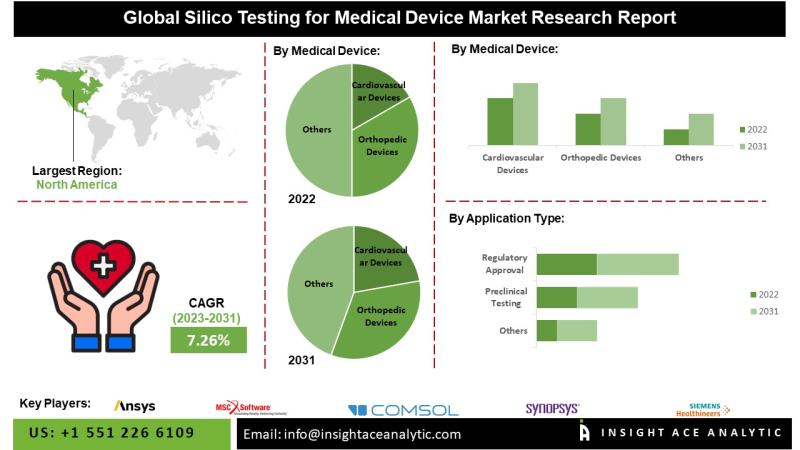 InsightAce Analytic Pvt. Ltd. announces the release of a market assessment report on the "Global Silico Testing For Medical Device Market Size, Share & Trends Analysis Report By Medical devices (Cardiovascular, Orthopaedic, Implantable, Diagnostic, Surgical Instruments), By application (Preclinical Testing, Regulatory Approval, Device Design and Development, Risk Assessment, Virtual Clinical Trials), Region, Market Outlook And Industry Analysis 2031"