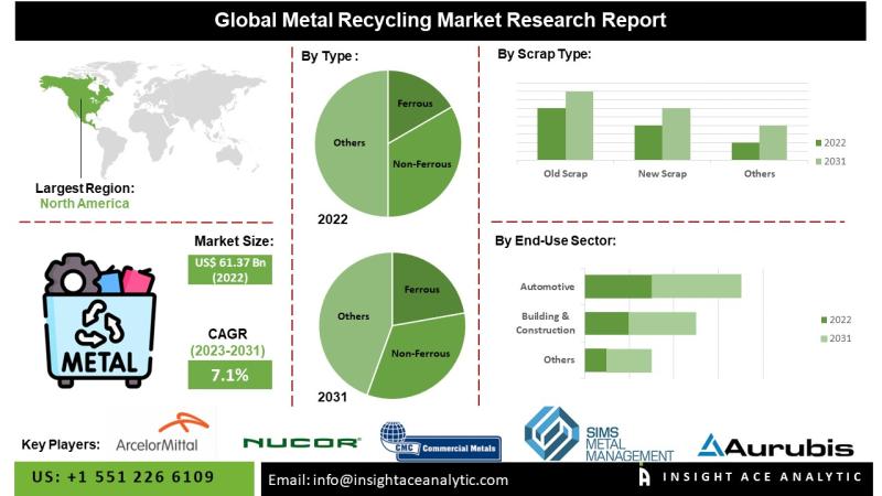 InsightAce Analytic Pvt. Ltd. announces the release of a market assessment report on the "Global Metal Recycling Market- (By Type (Ferrous, Non-Ferrous Metals), By Equipment (Shredders, Shears, Granulating Machines, Briquetting Machines), By End-User (Building and Construction, Packaging, Automotive, Shipbuilding, Electronics Equipment, Electrical Equipment)), Trends, Industry Competition Analysis, Revenue and Forecast To 2034."