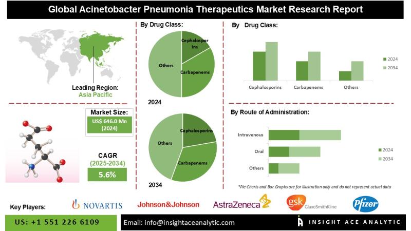 InsightAce Analytic Pvt. Ltd. announces the release of a market assessment report on the "Global Acinetobacter Pneumonia Therapeutics Market Size, Share & Trends Analysis Report By Drug Class (Cephalosporins, Carbapenems, Aminoglycosides, Polymyxins), By Route of Administration (Oral, Intravenous, Others), Region, Market Outlook And Industry Analysis 2034"