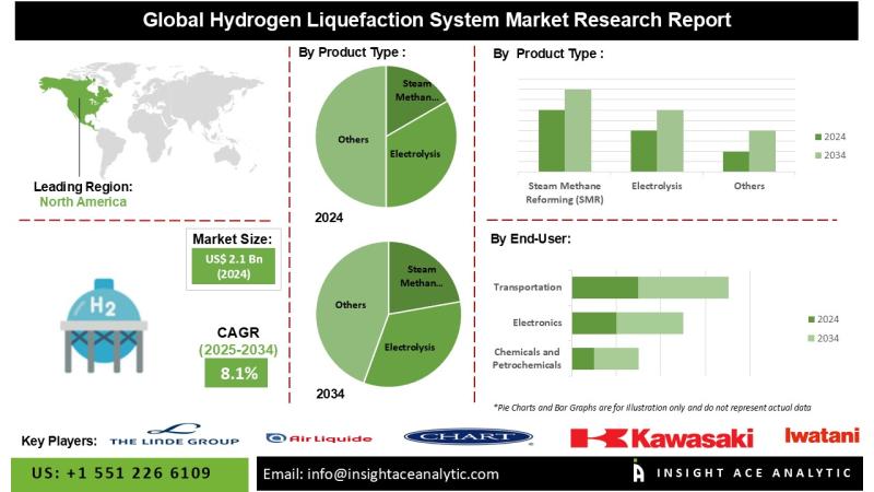 InsightAce Analytic Pvt. Ltd. announces the release of a market assessment report on the "Global Hydrogen Liquefaction System Market - By Product Type (Electrolysis And Steam Methane Reforming) And Application (Transportation, Electronics, Chemicals And Petrochemicals, Refining, And Others), Trends, Industry Competition Analysis, Revenue and Forecast To 2034."According to the latest research by InsightAce Analytic, the Global Hydrogen Liquefaction System Market Size is valued at USD 2.1 Bn in 2024 and is predicted to reach USD 4.5 Bn by 2034 at a 8.1% CAGR during the forecast period for 2025-2034.
