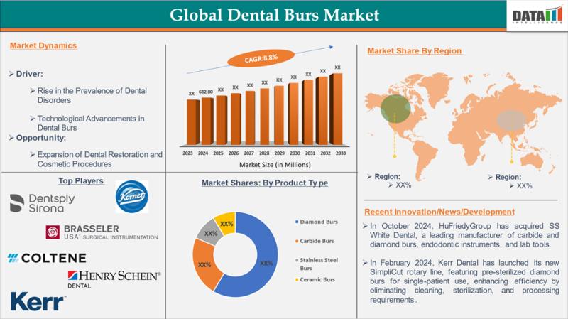 DataM Intelligence has published a new research report on "Dental Burs Market Size 2025". The report explores comprehensive and insightful Information about various key factors like Regional Growth, Segmentation, CAGR, Business Revenue Status of Top Key Players and Drivers. The purpose of this report is to provide a telescopic view of the current market size by value and volume, opportunities, and development status.
