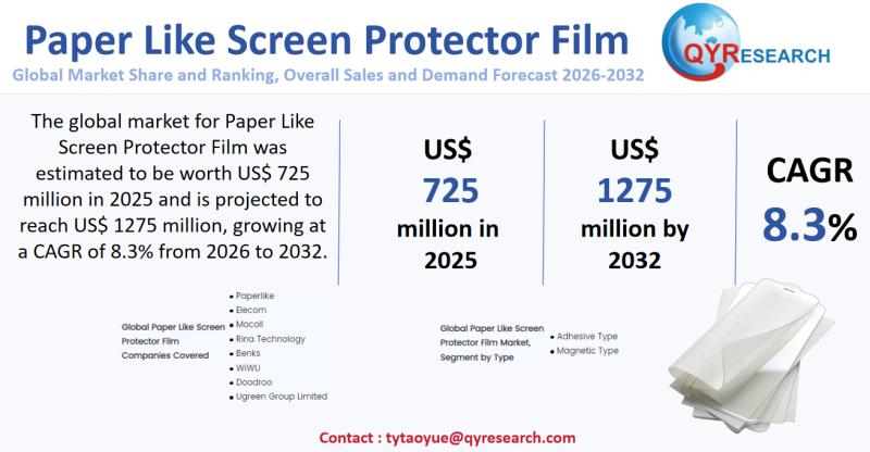 Unlock the Future of the Paper Like Screen Protector Film Market: Comprehensive Global Market Report 2026-2032Global leading market research publisher QYResearch published the release of its latest report, "Paper Like Screen Protector Film - Global Market Share, Ranking, Sales, and Demand Forecast 2026-2032". This in-depth report provides a complete analysis of the global Paper Like Screen Protector Film market, offering critical insights into market size, share, demand, industry development status, and future forecasts. Whether you're a stakeholder, investor, or industry player, this report equips you with the data and strategies needed to stay ahead in a rapidly evolving market.