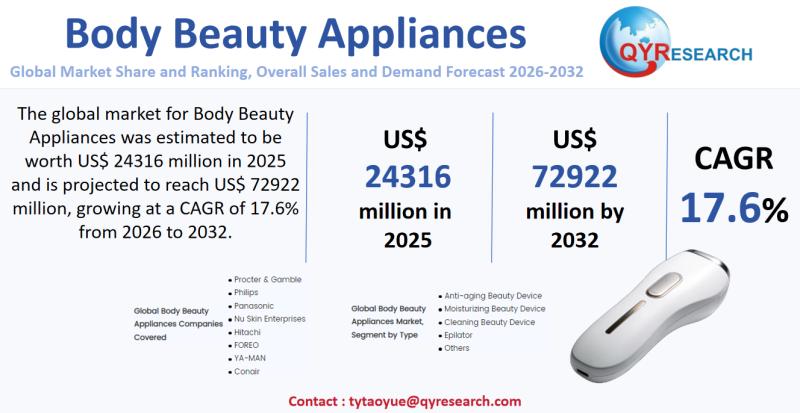 Unlock the Future of the Body Beauty Appliances Market: Comprehensive Global Market Report 2026-2032Global leading market research publisher QYResearch published the release of its latest report, "Body Beauty Appliances - Global Market Share, Ranking, Sales, and Demand Forecast 2026-2032". This in-depth report provides a complete analysis of the global Body Beauty Appliances market, offering critical insights into market size, share, demand, industry development status, and future forecasts. Whether you're a stakeholder, investor, or industry player, this report equips you with the data and strategies needed to stay ahead in a rapidly evolving market.