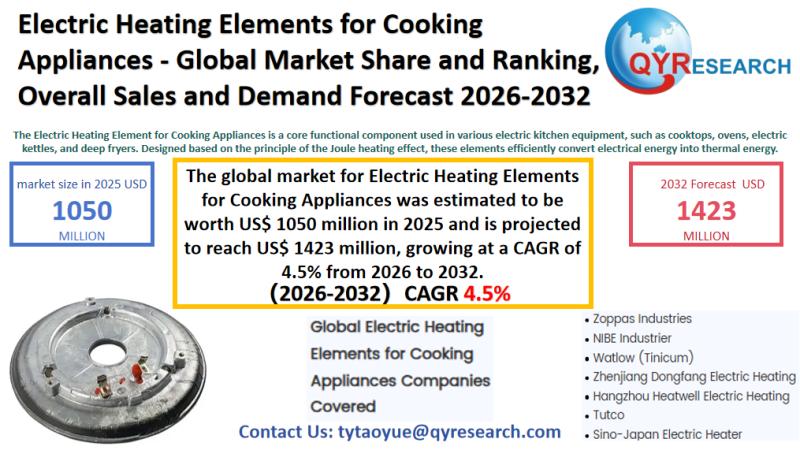 Global Leading Market Research Publisher QYResearch announces the release of its latest report "Electric Heating Elements for Cooking Appliances - Global Market Share and Ranking, Overall Sales and Demand Forecast 2026-2032". Based on…