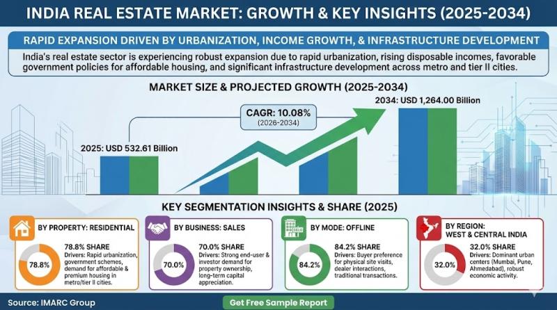 According to IMARC Group's latest report titled "India Real Estate Market Size, Share, Trends and Forecast by Property, Business, Mode, and Region, 2026-2034", this study offers a granular analysis of the sector's monumental shift towards organized development and digital integration. The study offers a profound analysis of the industry, encompassing India real estate market growth rate, share, size, key trends,…