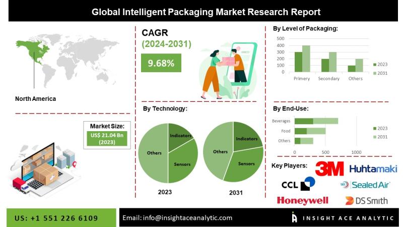 According to a new report by InsightAce Analytic, the Intelligent Packaging Market Size is valued at USD 21.04 Billion in 2023 and is predicted to reach 43.36 Billion by the year 2031 at a 9.68 % CAGR during the forecast period for 2024-2031.