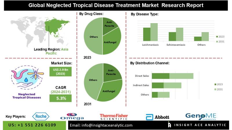 InsightAce Analytic Pvt. Ltd. announces the release of a market assessment report on the " Neglected Tropical Disease Treatment Market - (By Drug Class (Anti-Parasite, Antifungal, Antibiotics, Others), By Disease Type (Leishmaniasis, Schistosomiasis, Lymphatic Filariasis, Chagas Disease, African Trypanosomiasis, Others), By Distribution Channel (Direct Sales, Indirect Sales)), Trends, Industry Competition Analysis, Revenue and Forecast To 2031."