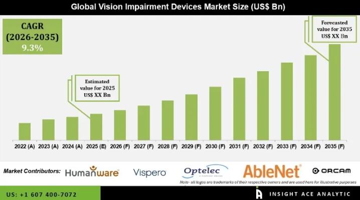 InsightAce Analytic Pvt. Ltd. announces the release of a market assessment report on the "Vision Impairment Devices Market"-, By Device Type (Low Vision Devices, Blindness Devices, Mobility Devices, Daily Living Aids), By End User (Special Needs Schools and Institutions, Enterprises and Social Organizations, Visually Impaired Individuals, Hospitals & Clinics, Others), and Global Forecasts, 2025-2034 And Segment Revenue and Forecast To 2034."