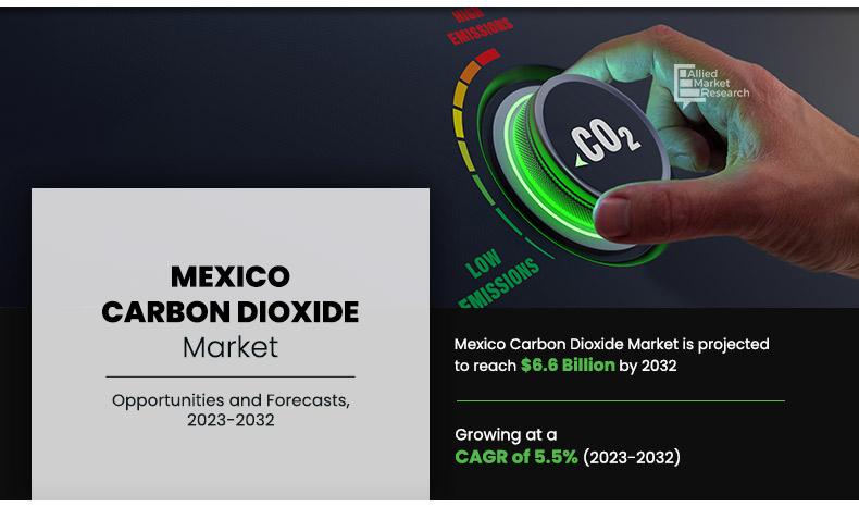 The Mexico carbon dioxide market was valued at $3.9 billion in 2022 and is projected to reach $6.6 billion by 2032, growing at a CAGR of 5.5% from 2023 to 2032.