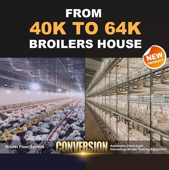Automated broiler cages: with resilient floor design, which helps improve harvesting efficiency.