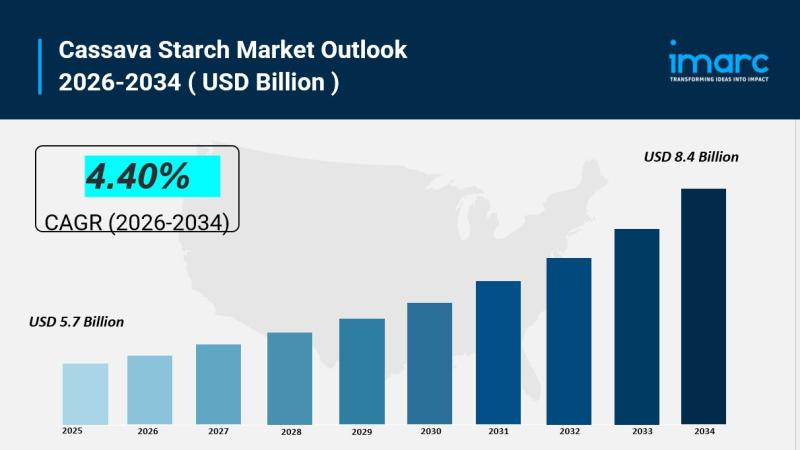 IMARC Group has recently released a new research study titled "Cassava Starch Market Report by End Use (Sweeteners, MSG/Lysine, Food Industries, Paper Industries, Modified Starch, Sago Pearl, Textile, and Others), and Region 2026-2034" which offers a detailed analysis of the market drivers, segmentation, growth opportunities, trends, and competitive landscape to understand the current and future market scenarios.