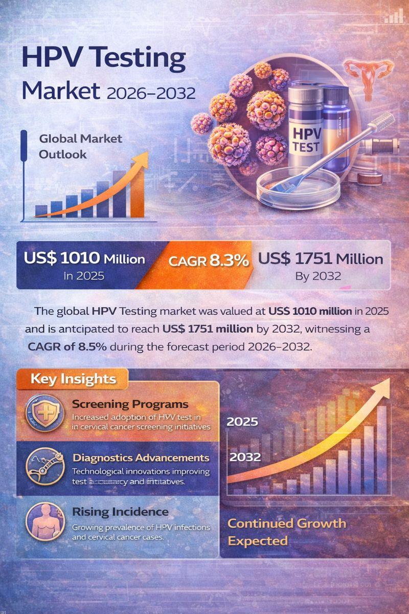 QY Research Inc., A global market research and consulting firm, has announced the release of its latest 2026 report titled "HPV Testing - Global Market Share and Ranking, Overall Sales and Demand Forecast 2026-2032." The report provides a data-driven analysis of the global HPV Testing market, integrating historical insights from 2020-2025 with forward-looking forecasts through 2032. It covers market size, competitive landscape, demand trends, and…