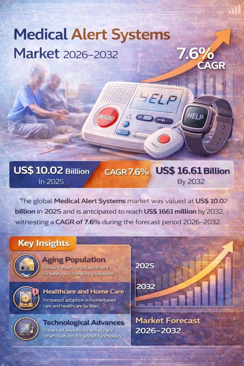 QY Research Inc., A global market research and consulting firm, has announced the release of its latest 2026 report titled "Medical Alert Systems - Global Market Share and Ranking, Overall Sales and Demand Forecast 2026-2032." The report provides a data-driven analysis of the global Medical Alert Systems market, integrating historical insights from 2020-2025 with forward-looking forecasts through 2032. It covers market size, competitive landscape, demand…