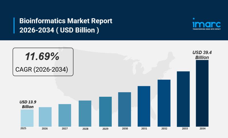 Bioinformatics Market OverviewThe global Bioinformatics Market reached a size of USD 13.9 Billion in 2025 and is forecasted to grow to USD 39.4 Billion by 2034, at a CAGR of 11.69% during 2026-2034. This growth is driven by technological advancements, increased genomic sequencing, rising demand for personalized medicine, and expanding biological databases. The market is vital for complex biological data analysis, contributing to innovations in healthcare, drug discovery, and biotechnology.