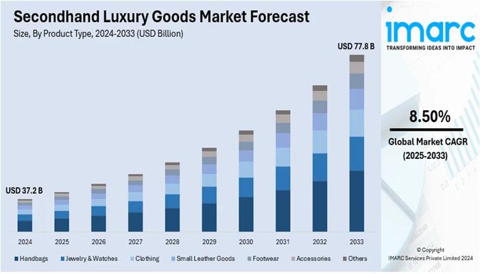Global Secondhand Luxury Goods Market to Grow at a CAGR of 8.50% from 2025-2033, …