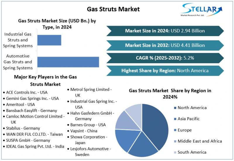 Gas Struts Market Projected To Reach USD 4.41 Billion by 2032, at a CAGR of 5.20% From 2025 to 2032
