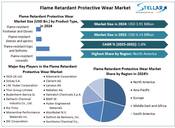 The Flame Retardant Protective Wear Market was valued at USD 3.91 billion in 2024, is expected to reach to USD 6.14 billion by 2032, at a CAGR of 5.8% from 2025 to 2032.
